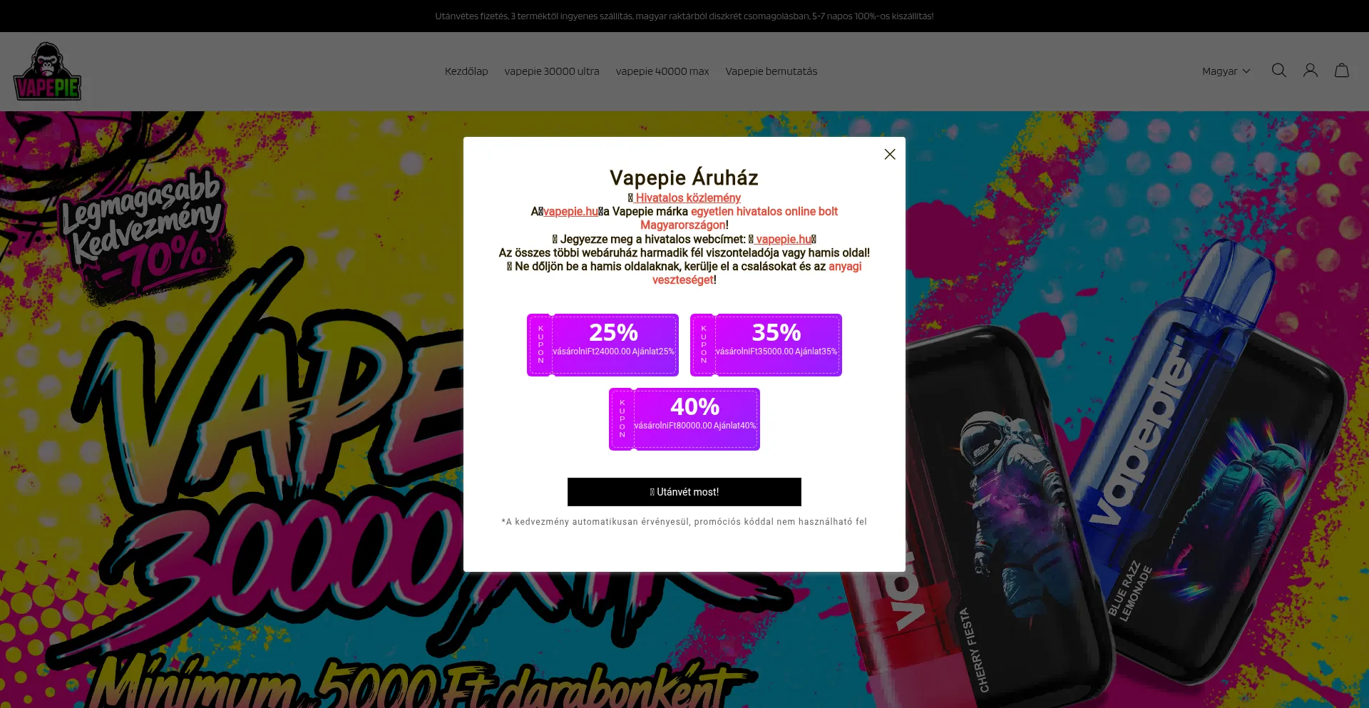 Vapepie.hu Avis sur le site web