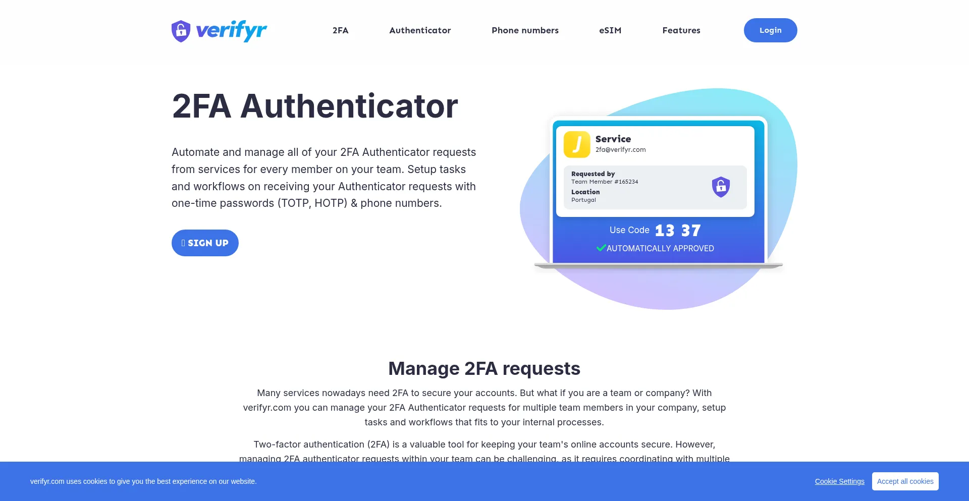 Automated 2FA requests for your team using authenticator apps and phone numbers