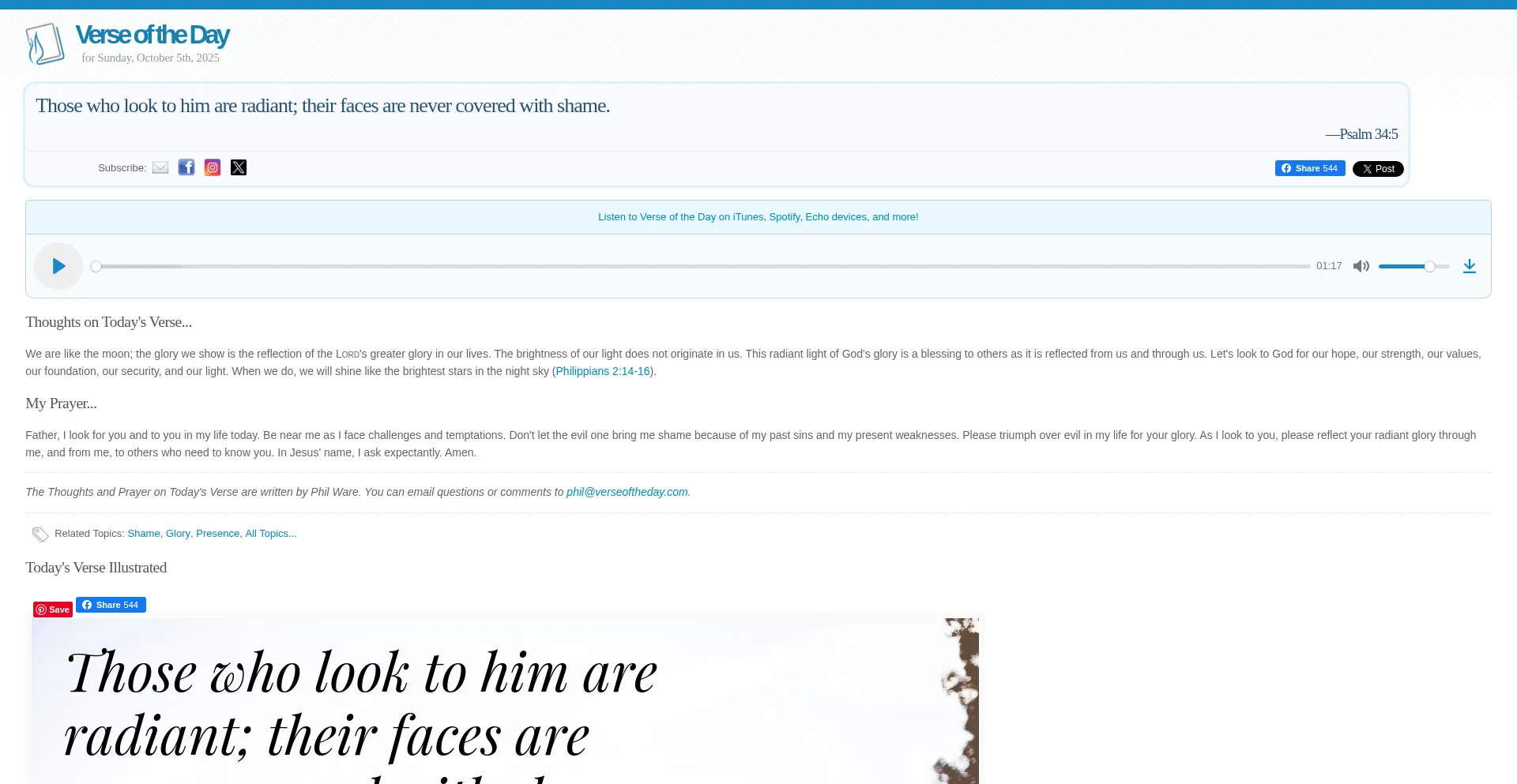 A daily devotional featuring a Bible verse, thought, and prayer.