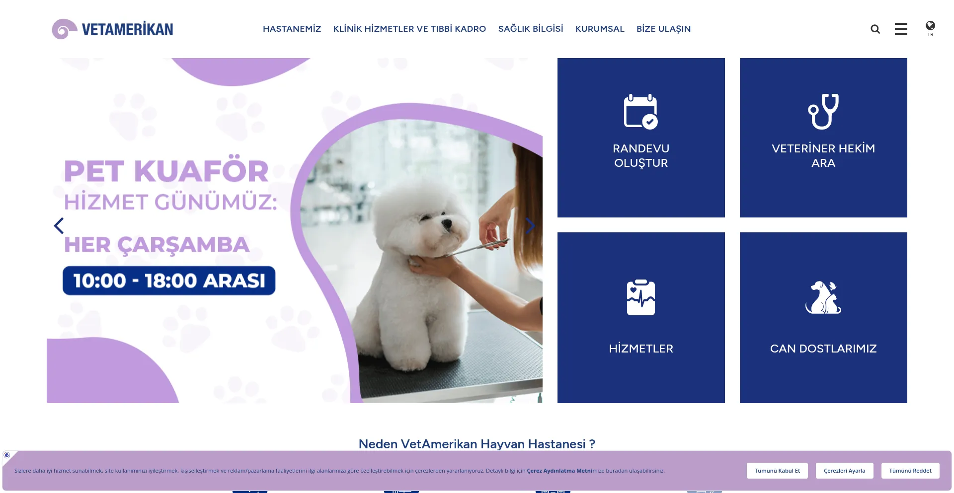 VetAmerikan TĂŒrkiye'de 100 yılı geride bırakmıß bir sağlık kurulußunun Veterinerlik alanına öncĂŒlĂŒk etmesini hedefleyerek, bunu hayata geçiren ilk hayvan hastanesi...