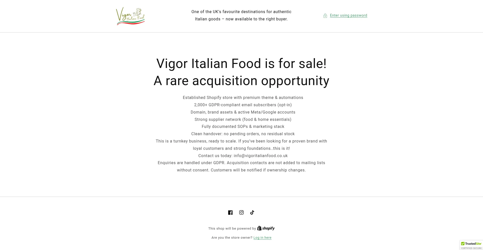 Êtes-vous le propriĂ©taire de Vigoritalianfood.co.uk ?