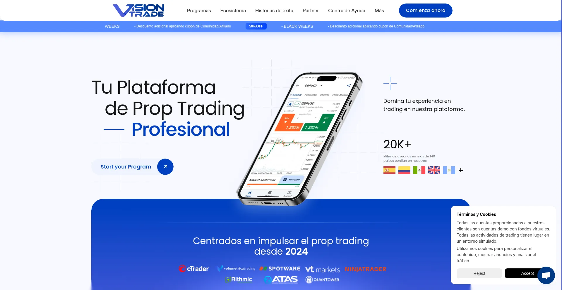 Vision Trade - Opera con cuentas fondeadas de Forex, Futures y Crypto
