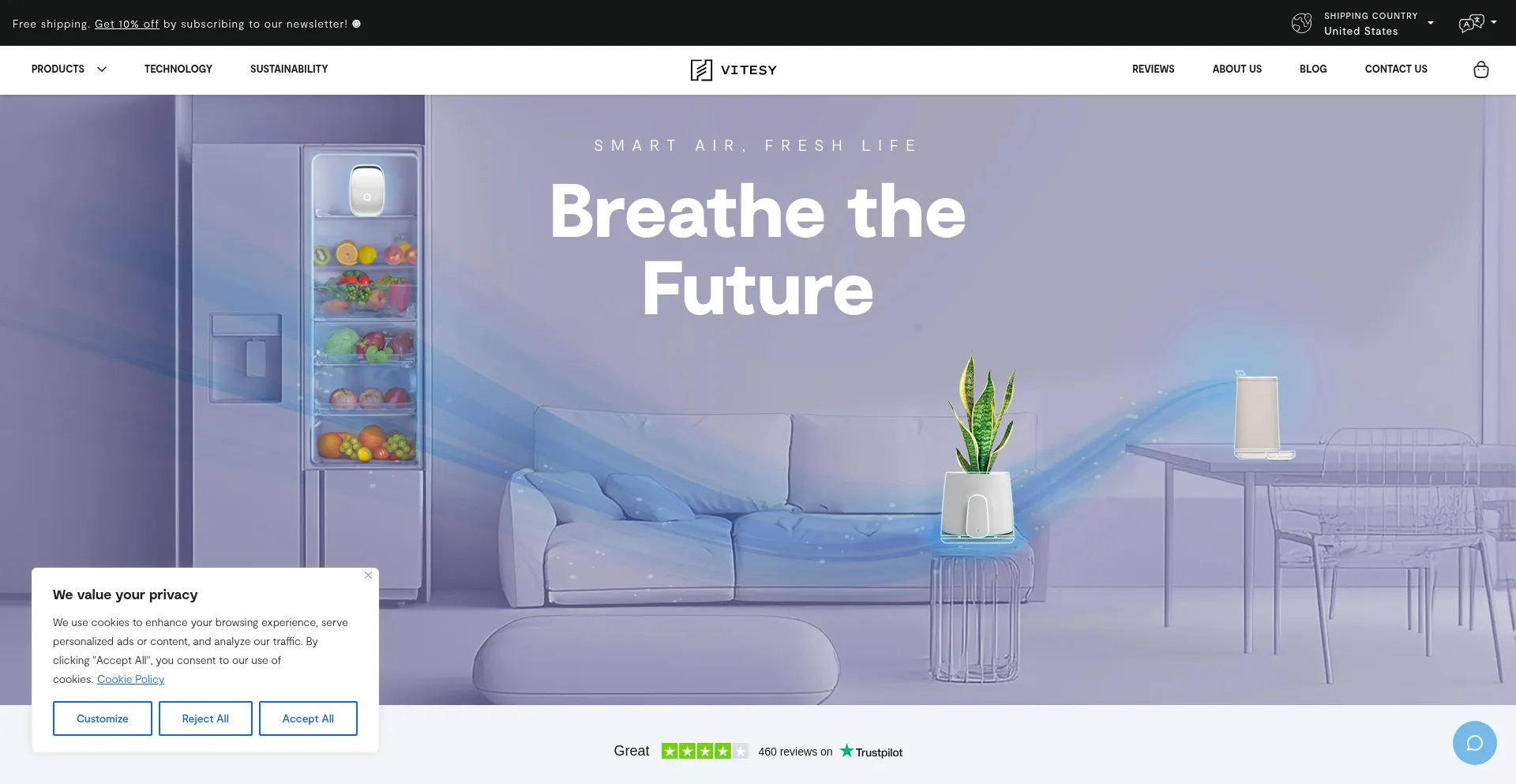 Discover Vitesy's sustainable air purifiers with washable air filters for indoor environments. Reduce food waste with technological products that make food last longer.