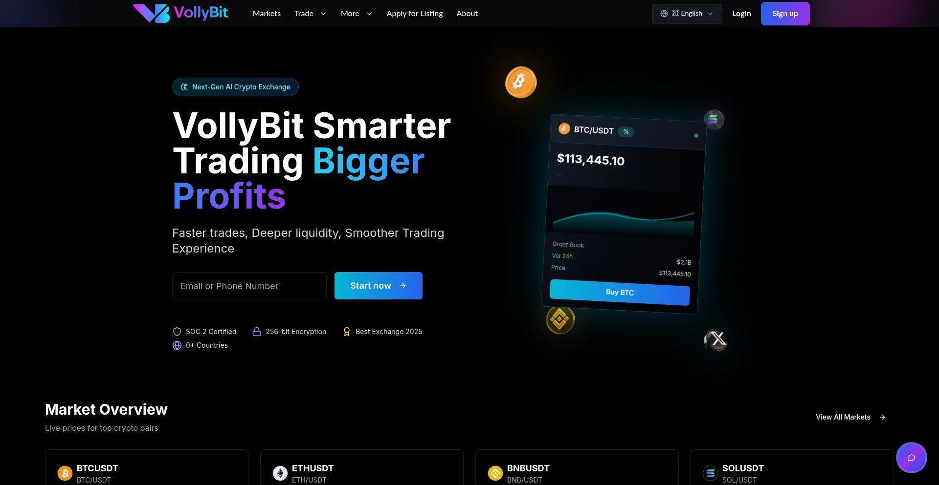 VollyBit Exchange | Buy & Sell Bitcoin, Ethereum & Altcoins | Zero Listing Fees