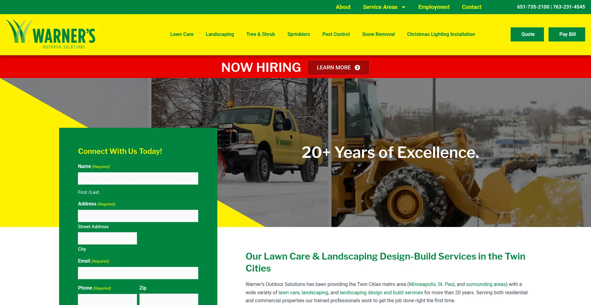 For over 20 years, our experts at Warner’s Outdoor Solutions have served the Twin Cities with lawn care and landscaping design. Contact us today for a quote!