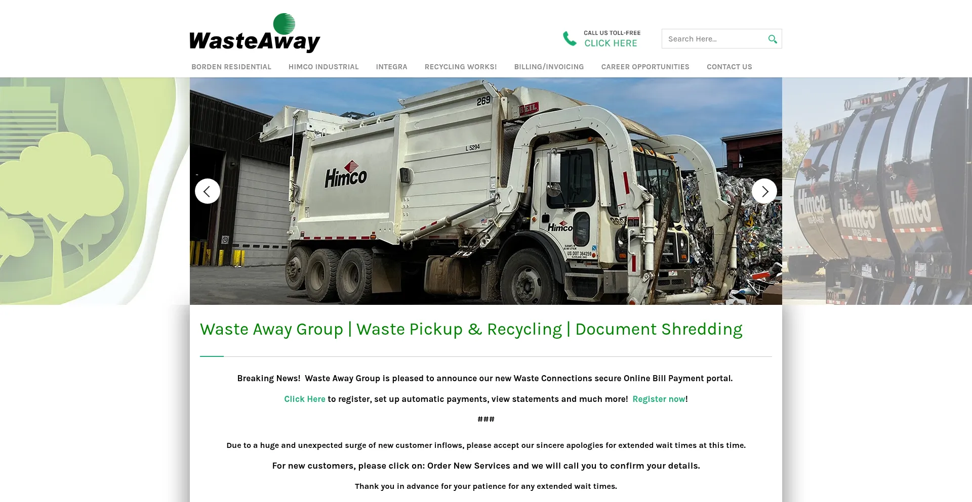 Contact Borden residential for trash pickup and Himco Industrial for dumpster and roll off container removal. Contact Integra Document Shredding for secure destruction of your ...