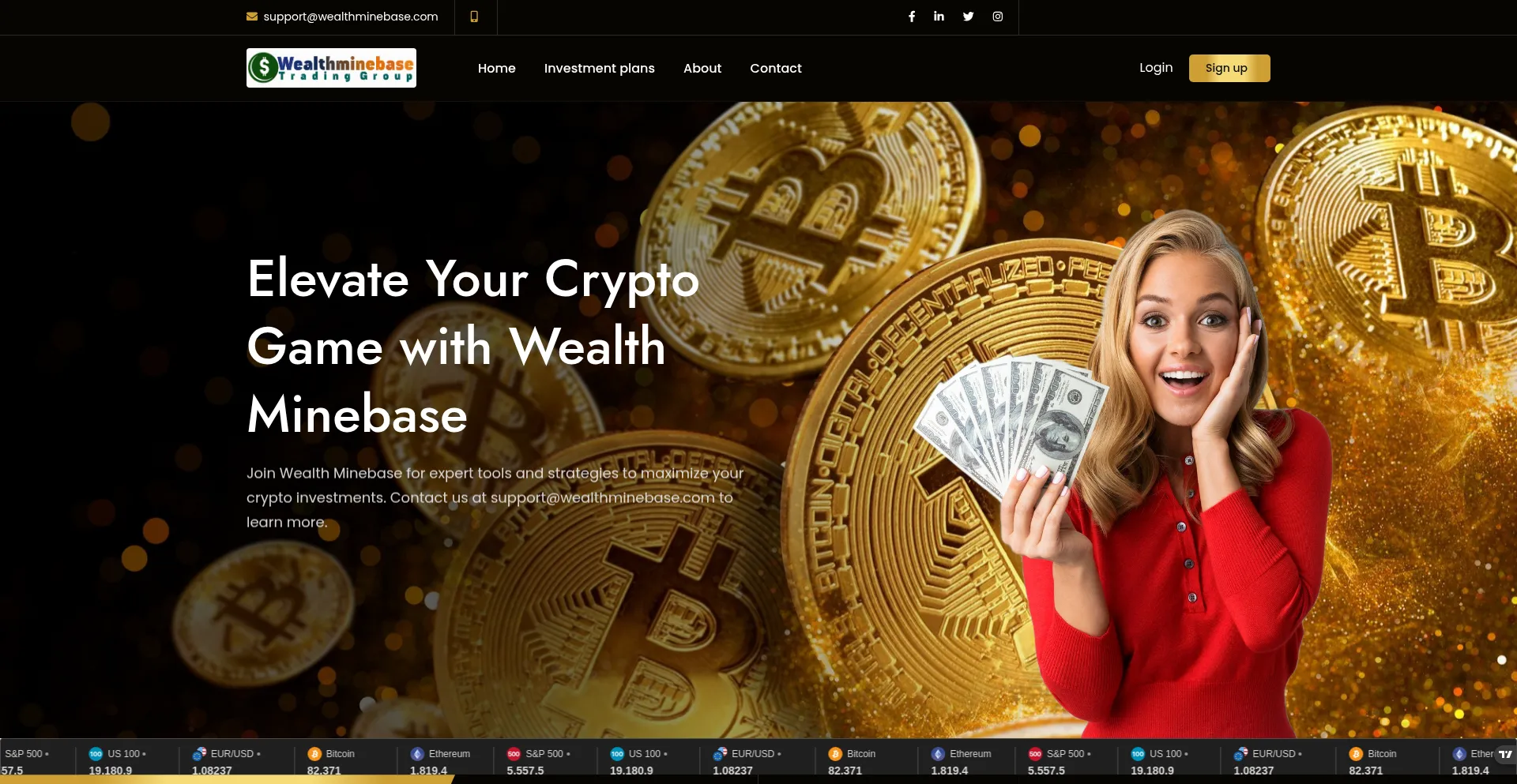 L'analyse révèle que wealthminebase.com affiche des icônes ou liens de médias sociaux qui ne se connectent pas à des profils légitimes de médias sociaux. Cette pratique trompeuse est couramment employée pour créer une fausse légitimité et représente un indicateur significatif d'intention frauduleuse nécessitant une prudence immédiate.