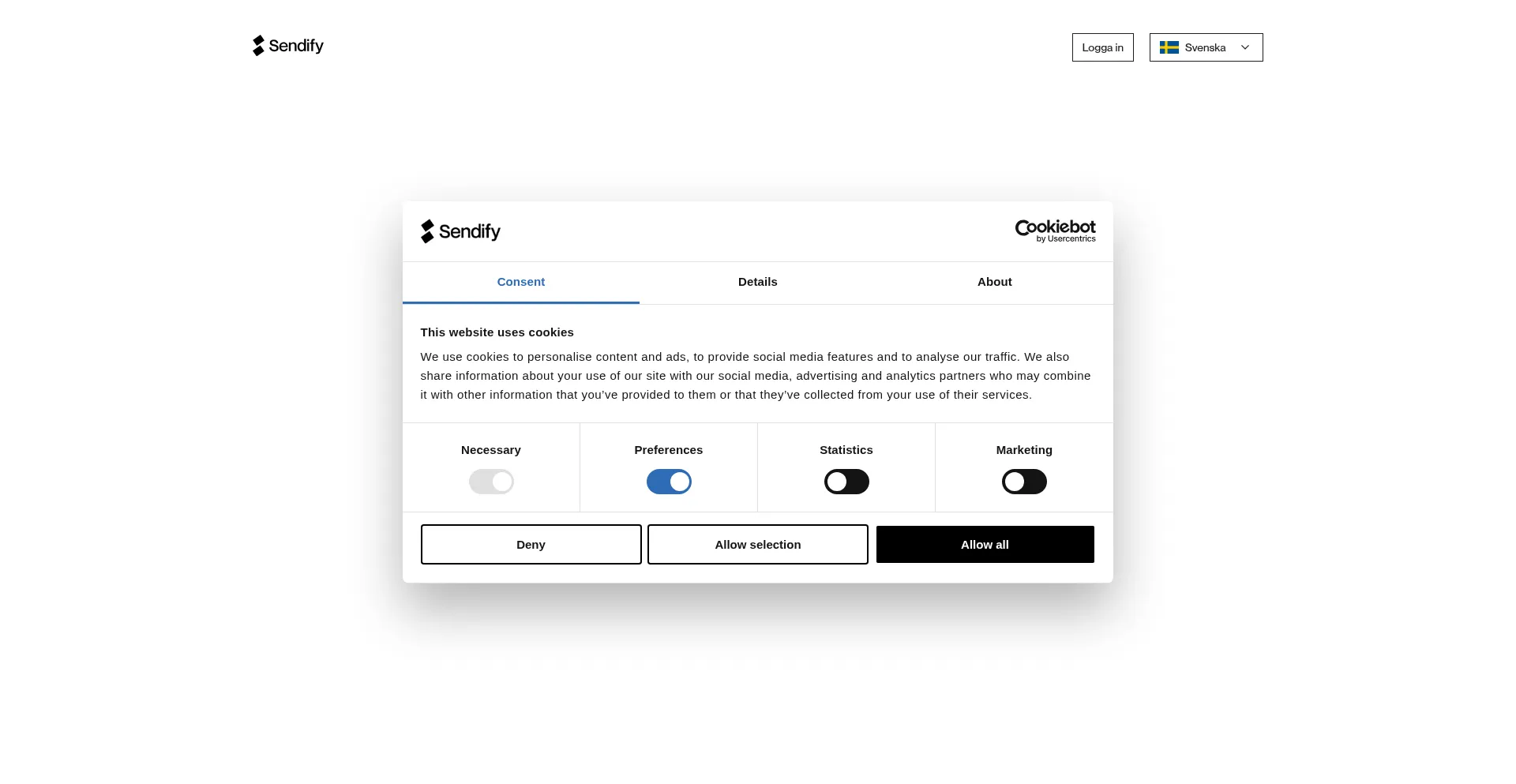 Le site web implémente des mécanismes de consentement aux cookies en conformité avec les réglementations de confidentialité telles que RGPD ou CCPA. Cela démontre que web.sendify.se adhÚre aux standards de protection des données et fournit aux utilisateurs un contrÎle sur les pratiques de collecte de données personnelles.