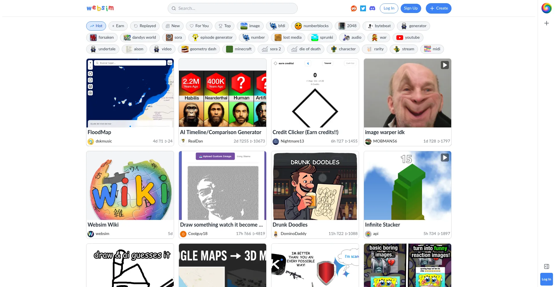 Create, and share interactive games and web pages on Websim