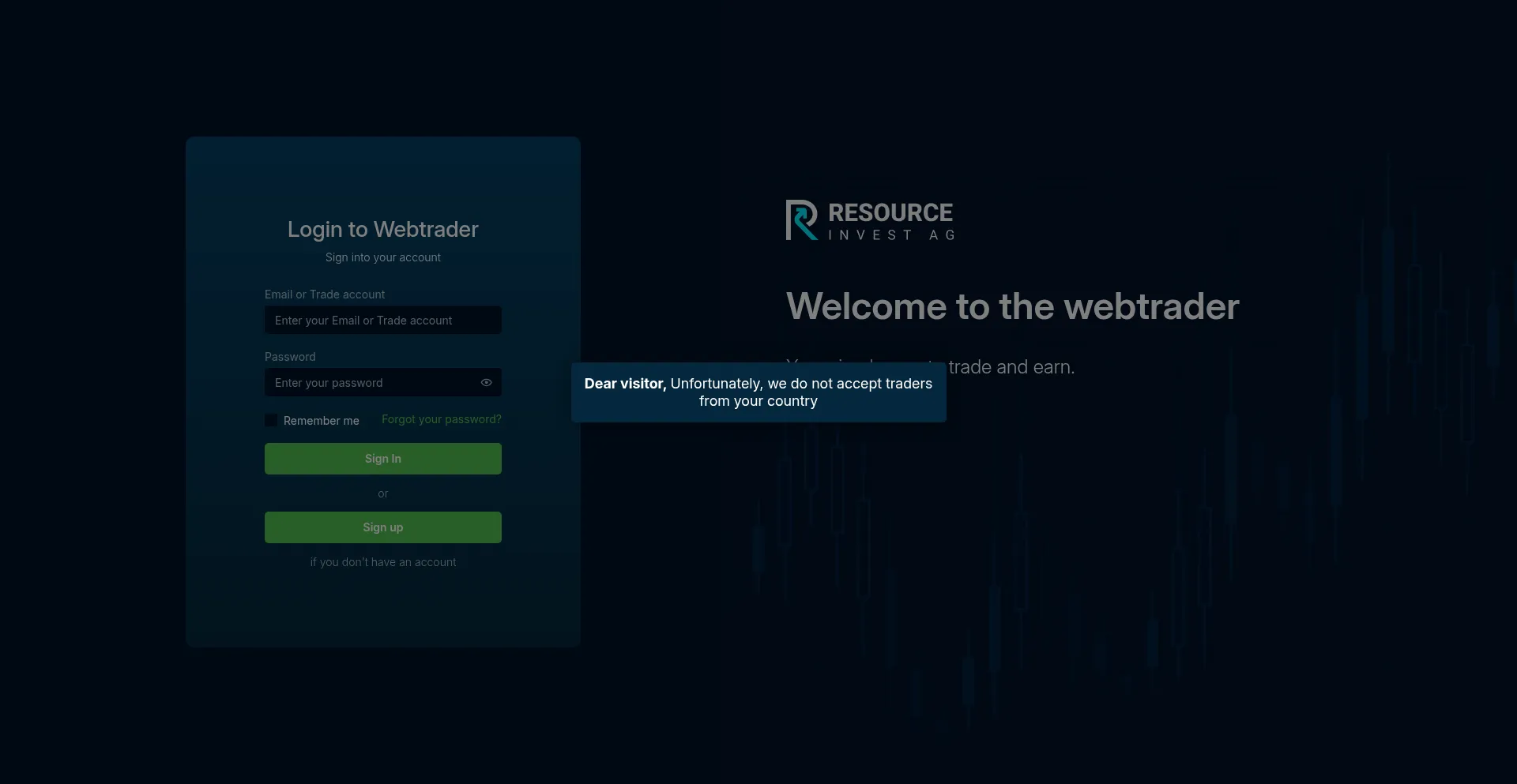 Webtrader.resourceinvest-ag.trade Site Web suspect