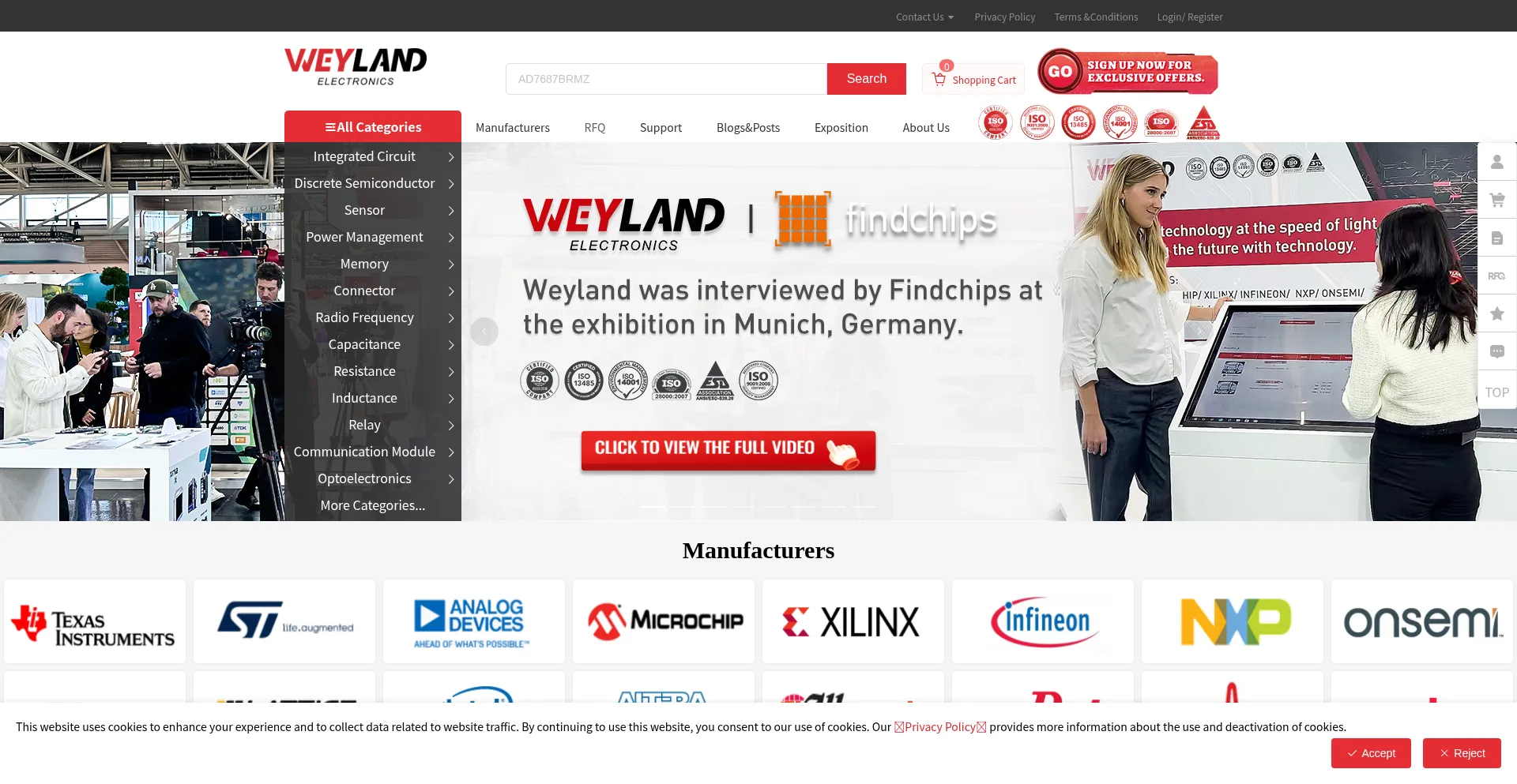Weyland is a professional electronic distributor . We have a professional team to offer obsolete chips / EOL chips / Franchise source chips/ OEM source chips .