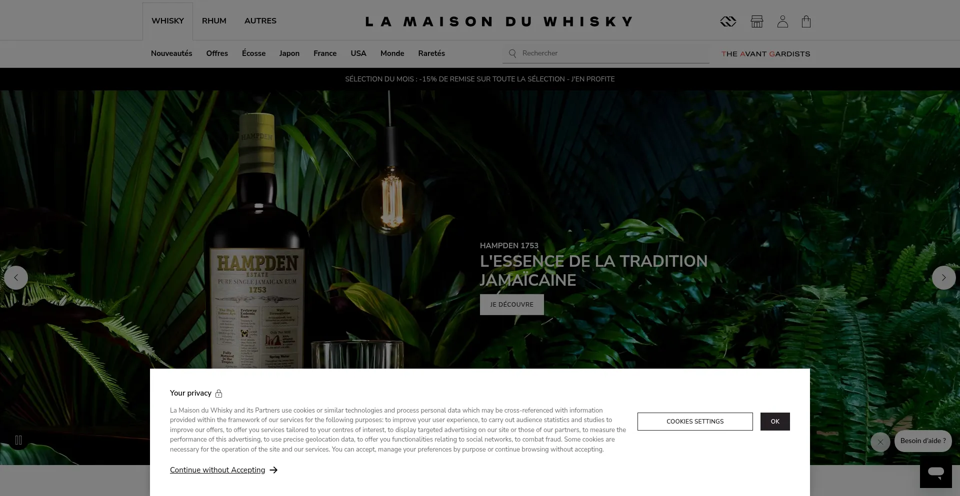 Le site web implémente des mécanismes de consentement aux cookies en conformité avec les réglementations de confidentialité telles que RGPD ou CCPA. Cela démontre que whisky.fr adhÚre aux standards de protection des données et fournit aux utilisateurs un contrÎle sur les pratiques de collecte de données personnelles.
