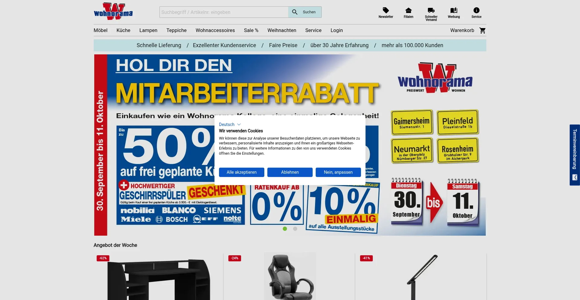 Das Möbelhaus und KĂŒchenstudio Wohnorama von A wie Ankleidezimmer ĂŒber Rollmatratzen bis zu Z wie ZeitungsstĂ€nder können sie bei uns alles bekommen.