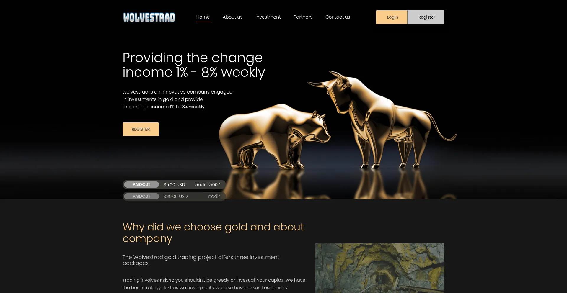 in investments in gold and provide the change income 1% To 8% weekly.