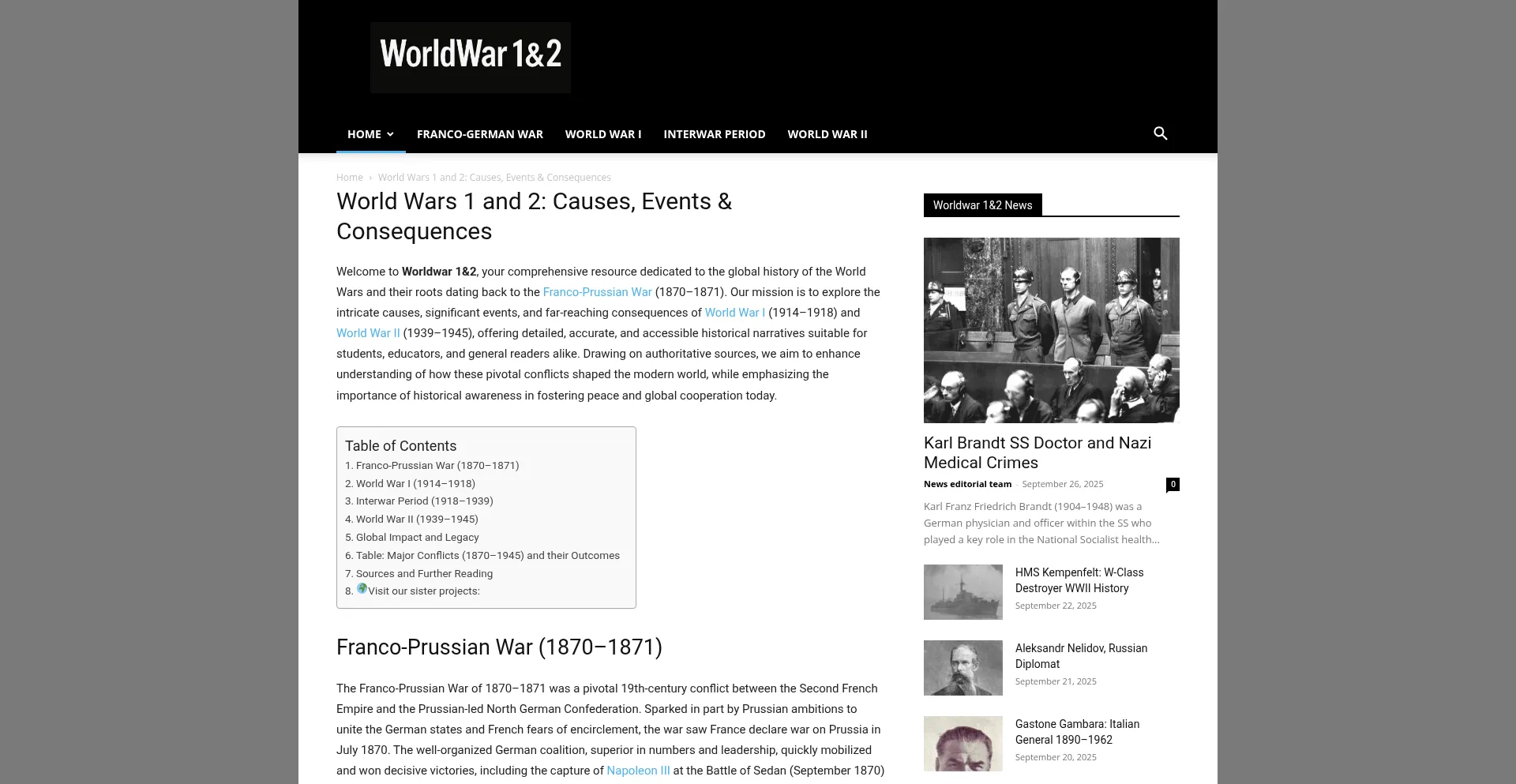 Discover detailed histories of World Wars I and II, exploring their global causes, key events, lasting impacts, and historical lessons.