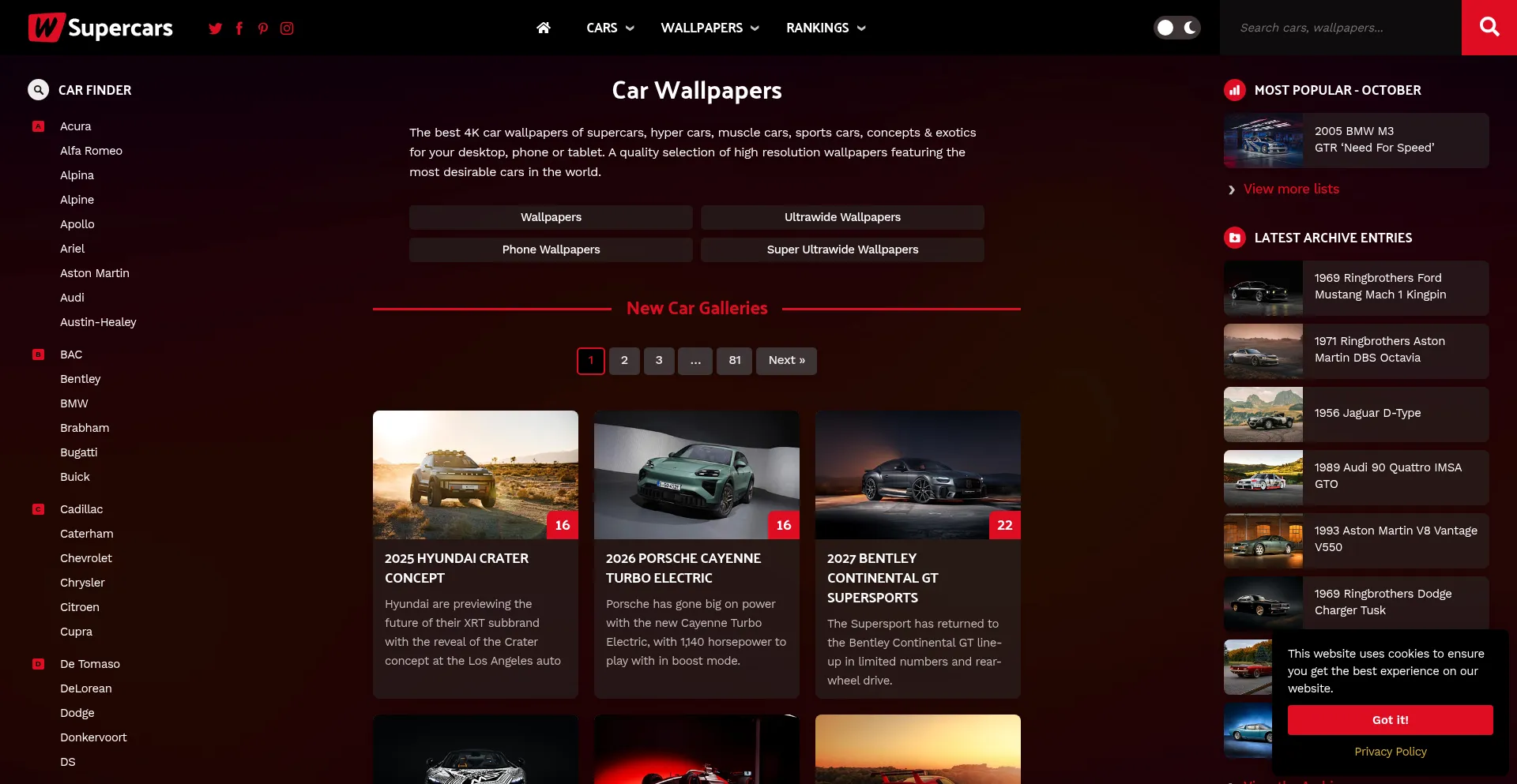 WSupercars - Wallpapers of supercars, hyper cars, muscle cars, sports cars, concepts & exotics for your desktop, phone or tablet.