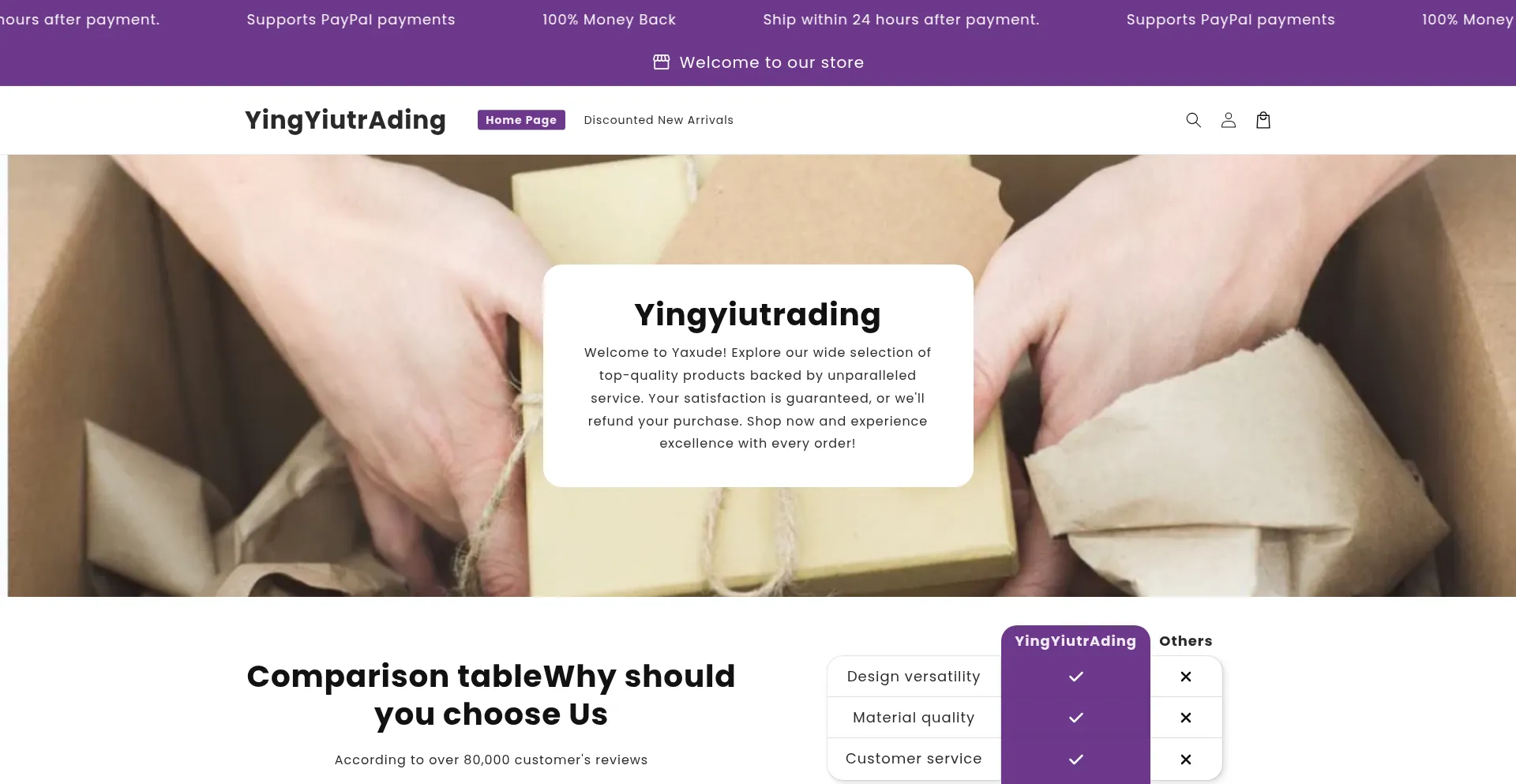 Shopping, Reliable Payment Method, Uses Free eCommerce Engine, Shopify Platform, Young Domain