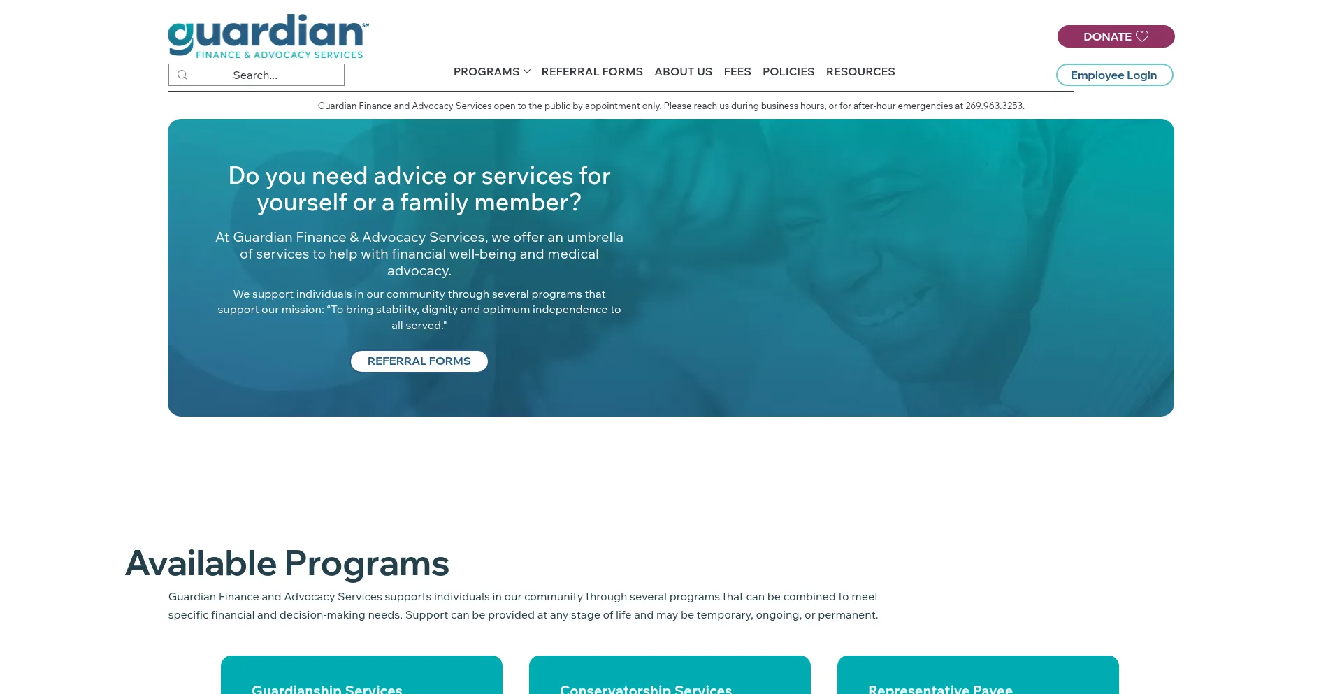 Guardian Finance and Advocacy Services open to the public by appointment only.