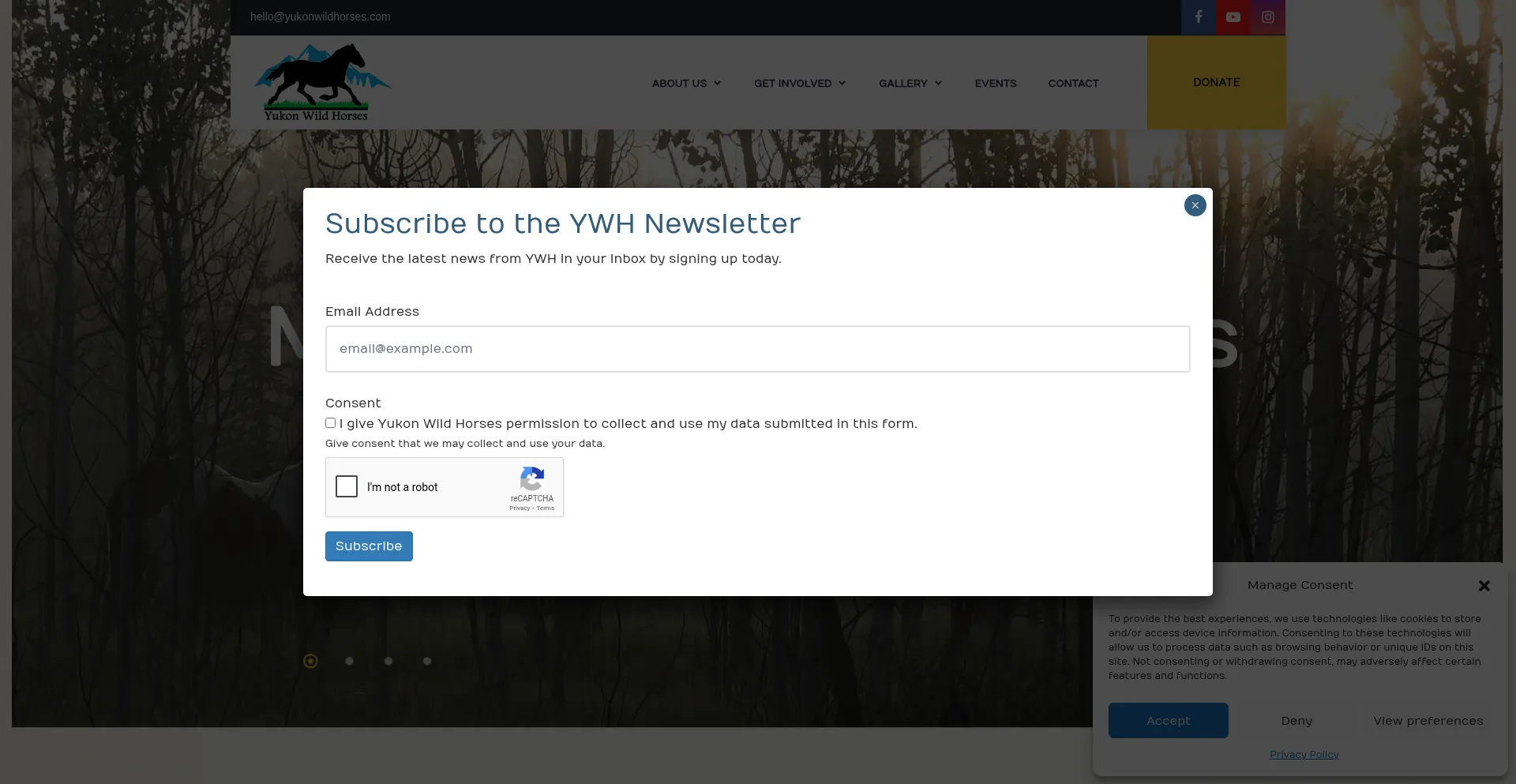 Le site web implémente des formulaires de collecte de données demandant des informations personnelles incluant noms, adresses e-mail, numéros de téléphone ou autres détails sensibles. Les utilisateurs doivent vérifier la légitimité de yukonwildhorses.com et examiner les politiques de confidentialité avant de soumettre des données personnelles.