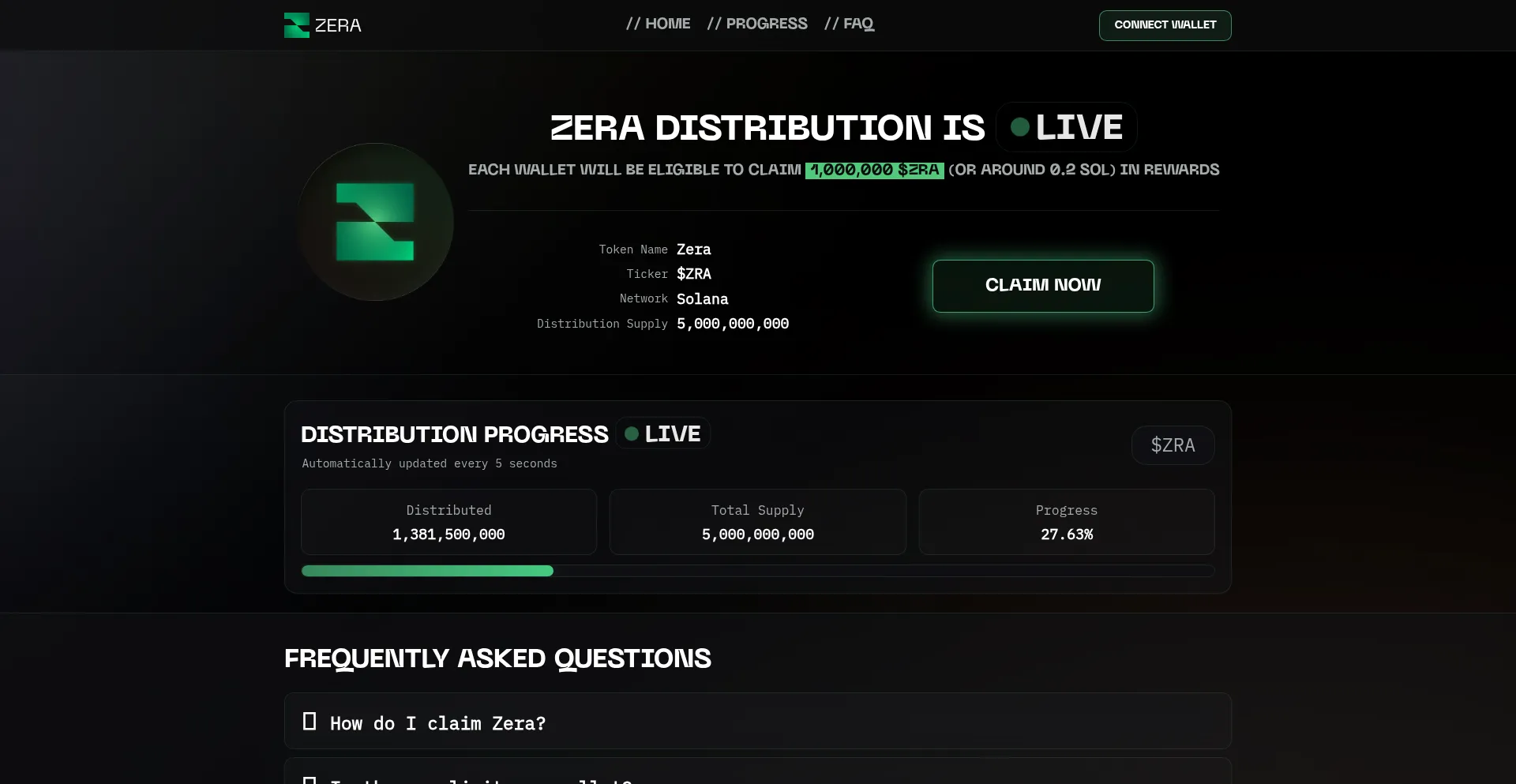 Join the live distribution of Zera ($ZRA) on Solana