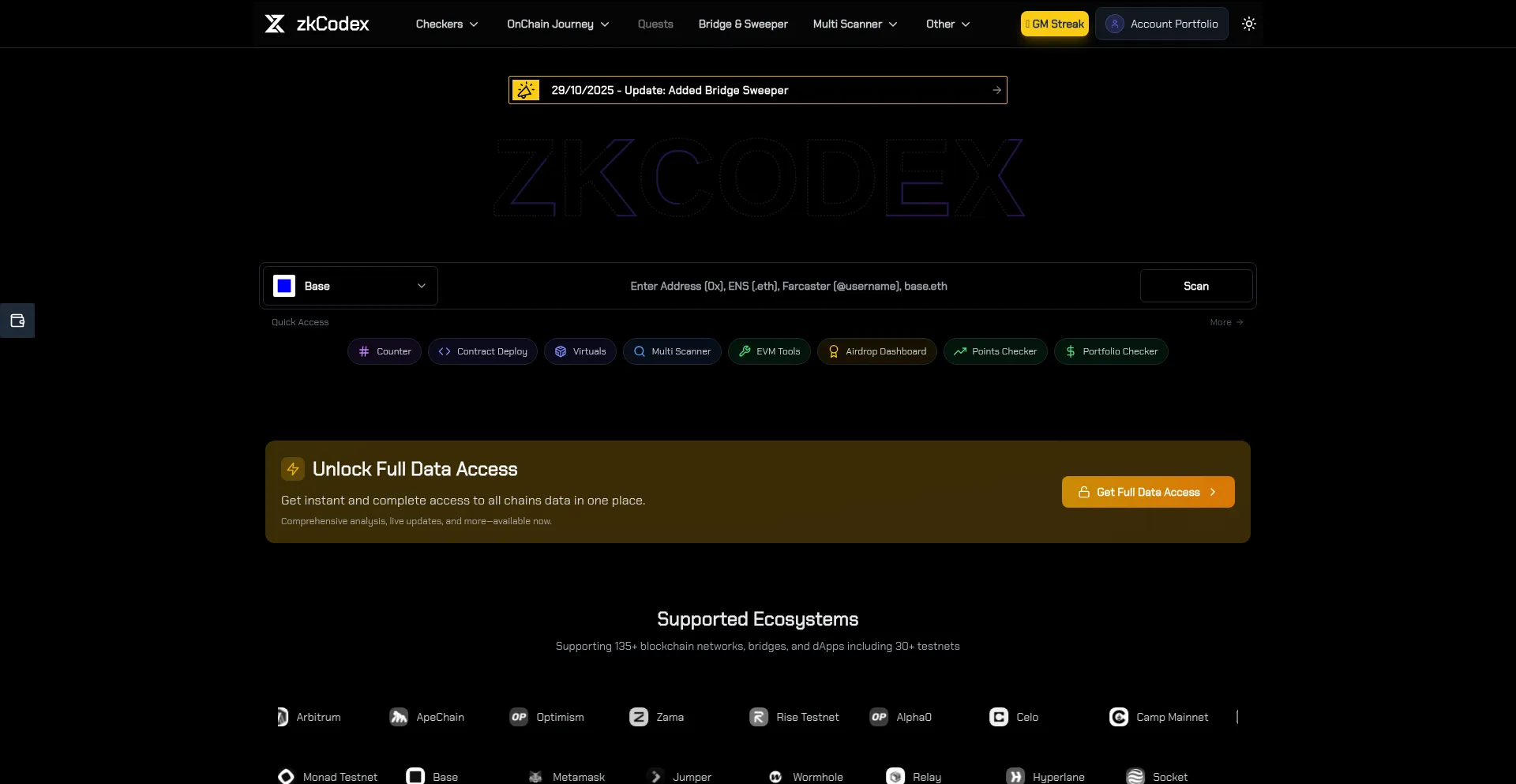Track wallets across 35+ networks, engage on-chain across 105+ networks, and discover airdrops—all in one place!
